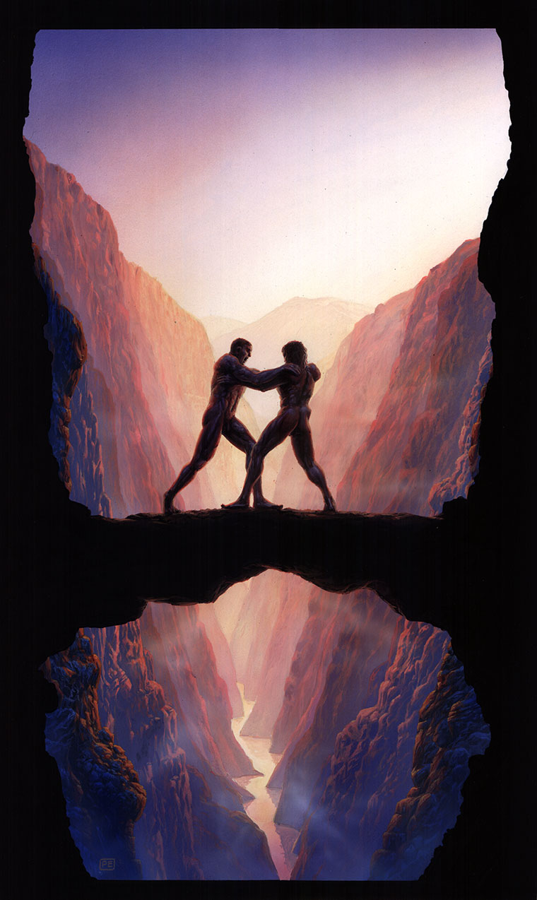 Tags: mountain, fight, silhouette, cavern
